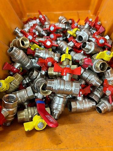 - Фитинги и переходники: латунные муфты, ниппели, уголки, тройники под резьбу разных типоразмеров.