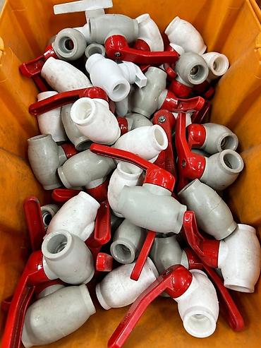 - Пластиковые шаровые краны с красным рычагом: лёгкие, для пластиковых труб, подходят для систем полива и бытовых водопроводов.