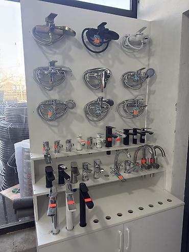 - Ассортимент: однорычажные смесители для умывальника и ванны/душа, настольные и настенные варианты, излив фиксированный и/или с душевым комплектом.