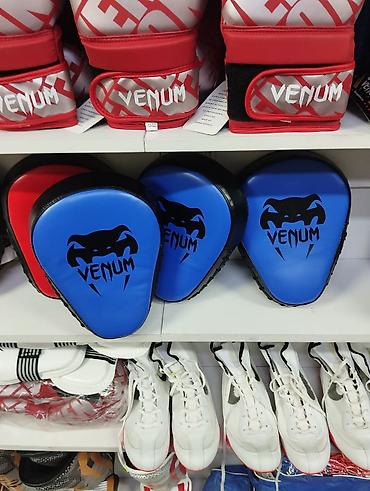 - Лапы и пады Venum (красные, синие, черные, белые) – изогнутые тренерские, амортизация ударов, надежная фиксация.
