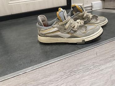 - Цвет: светло‑серый и бежевый с контрастными желтыми кантами; подошва в ванильном оттенке.