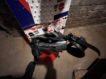 - Крепления: включены в комплект. Платформа с регулировкой углов и базы, верхний и носочный стрэп с трещотками, жесткая поддержка голени. Подойдут под стандартные ботинки для сноуборда; совместимость со вставками 4x4.