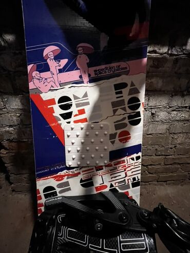 - Дизайн: графика с надписью «Snowboarders» и иллюстрацией астронавта с одной стороны; с другой — синяя/красная палитра с принтами.