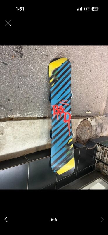 - Доска твин-тип, универсальная геометрия для фристайла и катания по склонам. Симметричная форма, широкие нос и хвост для стабильности на приземлениях и при переключении стойки. Скользяк с ярким принтом в стиле граффити (диагональные полосы, надпись B&D).
