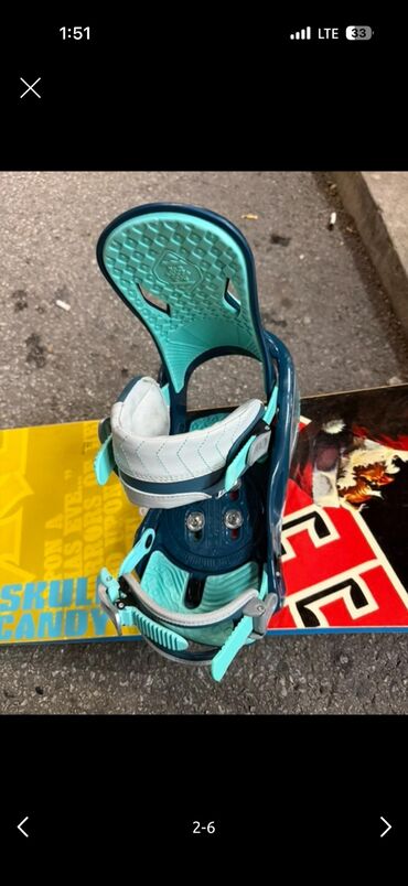 - Крепления включены: формованный хайбэк с перфорацией, верхний и нижний ремни с быстродействующими баклями. Амортизирующие накладки под стопой и на стрепах для комфорта и гашения вибраций. Цвет: бирюзовый/синий с серыми вставками.