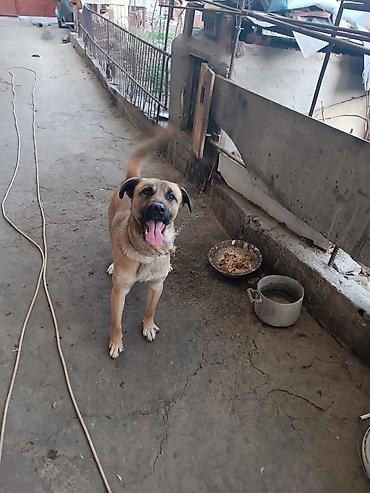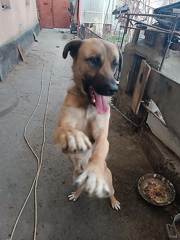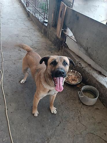 Молодой энергичный пёс среднего-крупного размера.
