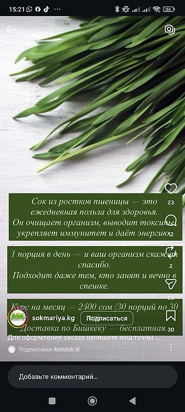 Курс на месяц — 2400 сом (30 порций по 30 мл).