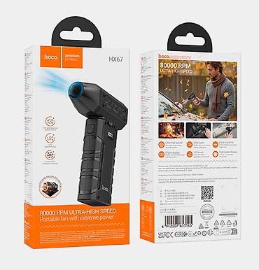 Hoco HX67 сдует пыль, почистит поверхность от крошек и опилок, готов почистить ваг авто от листьев, а также его удобно использовать для разведения костра, а в жакркий летний день будет создавать Вам прохладу. Основание дает возможность использовать данный вентилятор как настольный. LED цифровой дисплей имеет 2 функции-сигнализирует об остаточной емкости встроенного аккумулятора и показывает уровень вентиляции.