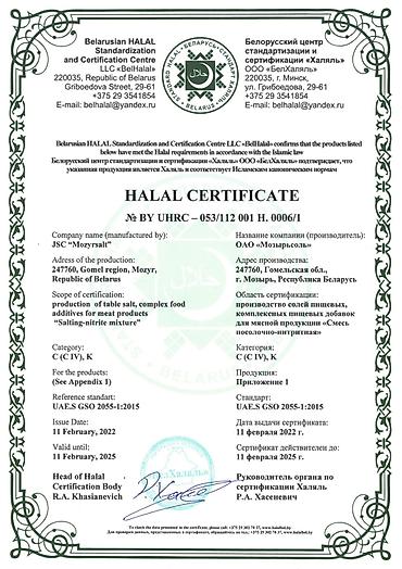 Сертификаты соответствия, качества, халал: в наличии!