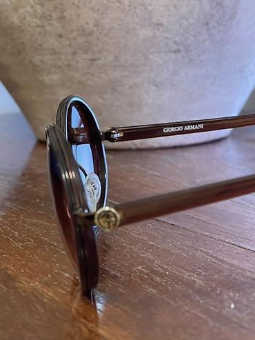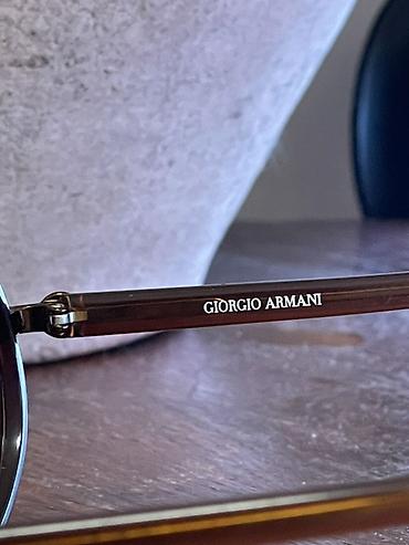 - Оправа: тонкая, тёмно-коричневая/черная, с гладкой глянцевой отделкой; на дужках фирменный логотип и надпись GIORGIO ARMANI.