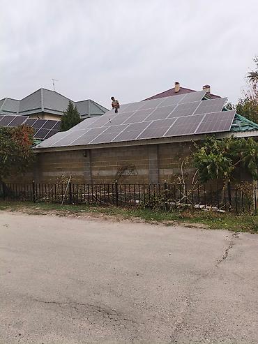 - Солнечные панели на крыше: массив модулей, смонтированных на скатной крыше, оптимизированная расстановка для максимального сбора энергии.