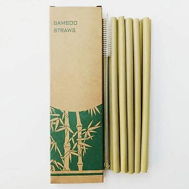 Соломинки, трубочки из натурального бамбука питьевые, многократного использования - 10шт, высота 20 см + ершик ( чистящая щетка) для чистки.