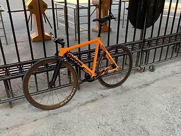 Спортивный трек/фикс-байк Me?ll? (надпись на раме) с жесткой карбоновой/алюминиевой аэро-рамой и прямой карбоновой вилкой. Формат — singlespeed/фикс: одна звезда спереди, один cog сзади, без перекл...