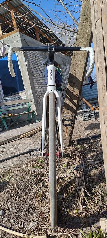 - Рама и вилка: алюминиевая, бренд AXE, окраска белая