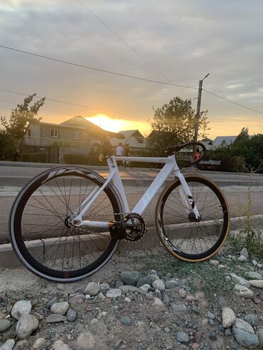 Шоссейный/фикс-велосипед в классическом стиле - Рама стальная, размер ориентировочно M (под рост ~165–180 см). Геометрия дорожная/шоссейная. - Колеса 700C с узкими шоссейными покрышками. - Тормоза...