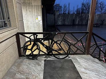 - Колеса: 700C; переднее — литой аэродиск с 5 лопастями, заднее — классический обод с тонкими спицами.