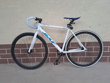 Фикс/синглспид велосипед на шоссе 700C - Рама и вилка: алюминий, геометрия трек/фикс, цвет белый с серыми надписями. - Привод: одинарная передняя звезда и задняя звёздочка, цепь натягивается гориз...