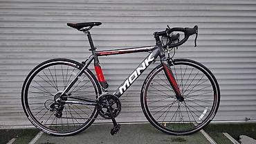 - Цвет: чёрный/серый с красными акцентами, крупный логотип MONK на раме и вилке