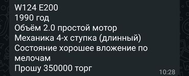 Срочно, срочно, срочно🔥🔥🔥 Продаю мерс w124!!! Для тех кто ищет для себя!!! Год выпуска: 1995 Механика Обьем 2.0 литра Машина в хорошем состоянии. Торг у капота!!!