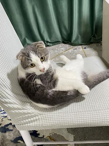 Шотландские котята (скоттиш-фолд/скоттиш-страйт) (серая девочка, белый мальчик) 2 месяцев очень любят играть, к лотку приручены, едят и сухой и жидкий. серая за 12 тысяч сом, белый за 13тыс сом! То...