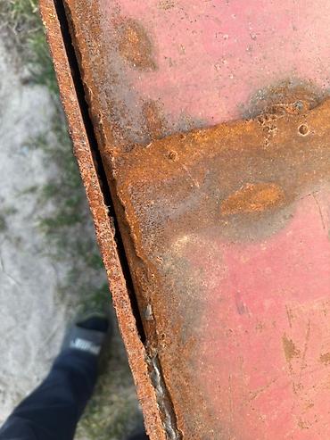 Металлический бокс/контейнер из листовой стали. Описание: - Цельнометаллическая конструкция из толстого листа, усиленная угловым профилем. - Габариты ориентировочно: длина около 3 м, ширина 1,2–1,...