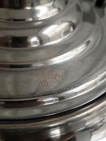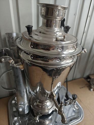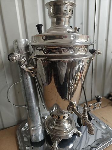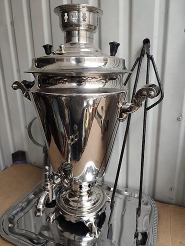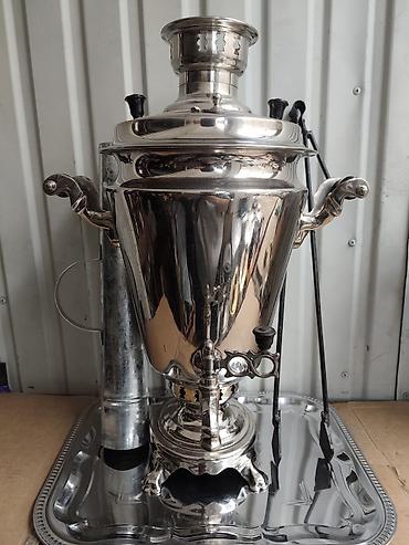 🏆 Илгерки жез Хан самоору. 🌊 Көлөмү: 7 литр. 🪙 Материалы: Жез (латунь). 🏭 Өндүрүш: Б. Л. Ванников атындагы "Штамп" машина куруу заводу, Тула шаары, СССР. 🎖️ Чыккан жылы: 1970 - жж. 🪵 Иштеши: Отун, ...