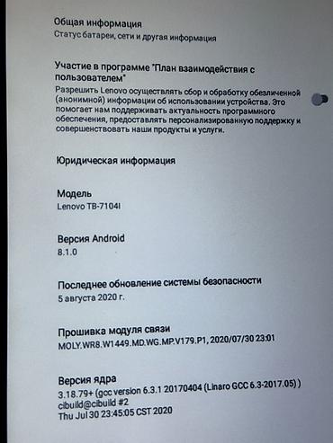 - Модель с поддержкой связи: TB-7104I (наличие модуля связи/4G по прошивке MOLY.WR8.W1449.MD.WG.MP.V179.P1)