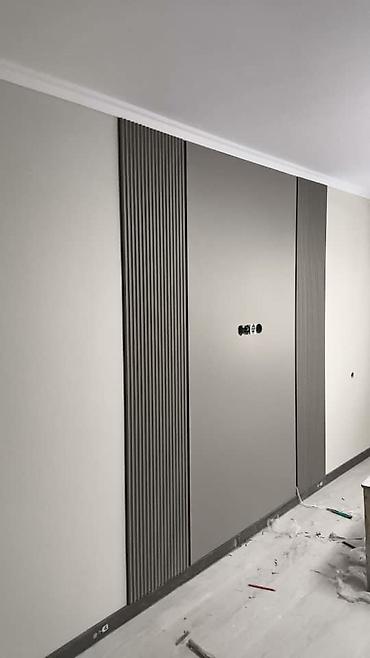 - Стильный светлый интерьер: однотонные стены с декоративной штукатуркой и акцентными панелями с вертикальными рейками.