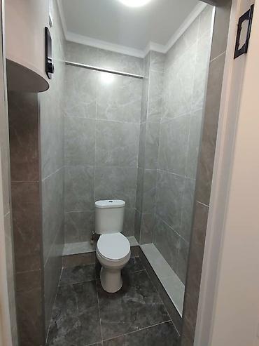 - Отдельный туалет: облицовка керамогранитом, унитаз, места под хранение по бокам.