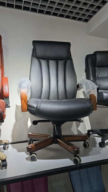 Офисное кресло, Новый, С колесиками, цвет - Черный, Кожа, В рассрочку, Бесплатная доставка