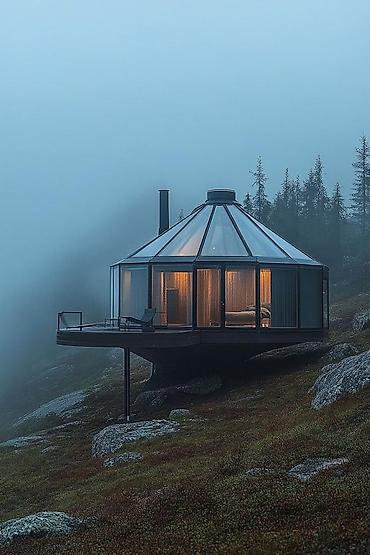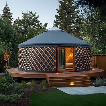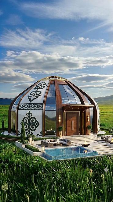 - Архитектура: сферические и многогранные купола с панорамным остеклением, вариации от компактных юрт до двухэтажных купольных резиденций с круговым балконом. Возможны декоративные панели с этническими орнаментами, деревянные акценты, световые вставки.