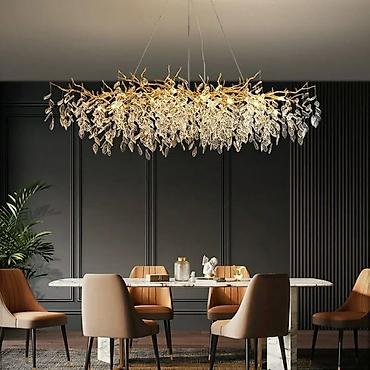 - Модель 2 — выразительная декоративная люстра, даёт игру бликов за счёт «листьев», идеальна над обеденным столом.
