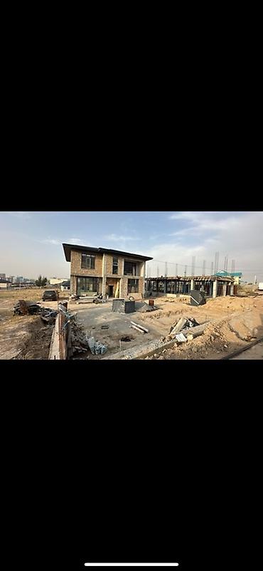 Продажа современного двухэтажного дома с панорамным остеклением и плоской крышей на этапе строительства.