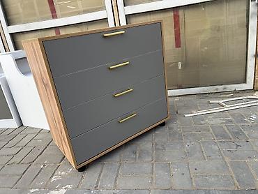 Комод с 4 выдвижными ящиками, новый! Цвет делано серый. Высота с ножками 110 см, глубина 50 см, ширина 1 метр. Очень вместительный, полностью утолщенный, с качественными выдвижными механизмами.
