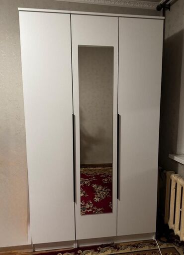 Шкаф с зеркалом 10000 сом Двухдверный шкаф-купе для одежды в современном минималистичном стиле. Характеристики: - Корпус и фасады в светлом матовом оттенке, лаконичный дизайн с контрастными верти...