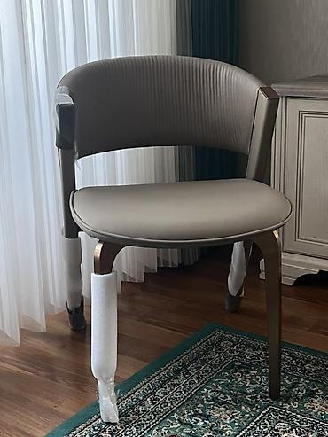 Стиль: современный/неоклассика с акцентной металлической отделкой. Подойдет как одиночный акцентный стул или комплектом к обеденному столу.