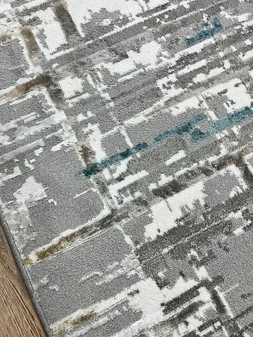 Ковер 2,5•3.5 - Дизайн: современные геометрические квадраты и прямоугольники разного размера - Цветовая палитра: сочетание бежевого, серого, светло‑голубого и молочно‑белого тонов; нейтральные отт...
