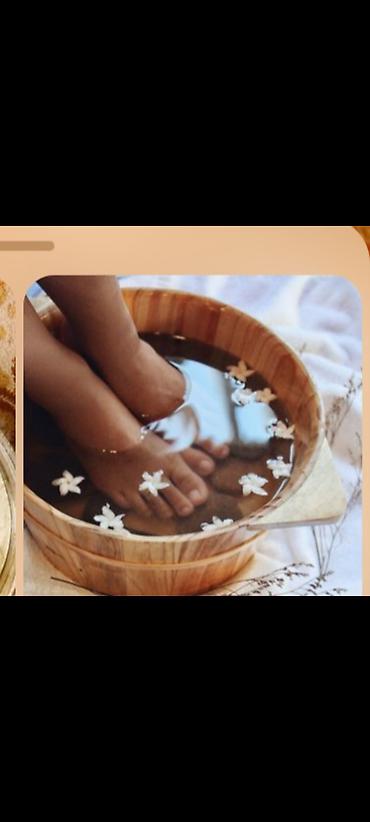 - Ароматические ванночки для стоп: тёплые расслабляющие ванны с пеной/травами и лепестками, мягкое очищение и ополаскивание, подготовка кожи к дальнейшему уходу.