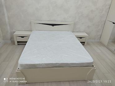 Спальный гарнитур, Б/у, Двуспальная кровать, Шкаф, Комод, Белоруссия, Дерево, цвет - Бежевый