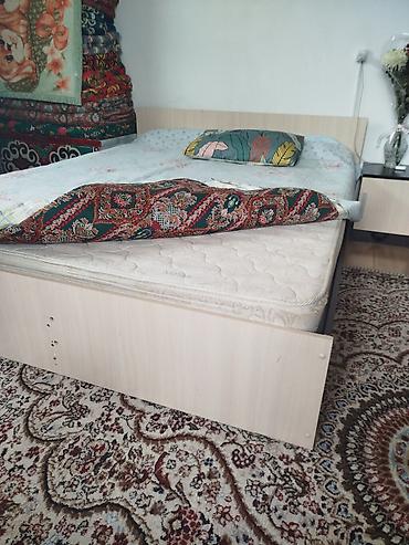 - Двуспальная кровать с высоким изголовьем, матрас в комплекте.