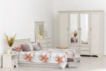 Спальний комплект входит Шкаф 5 дверный высота 2,33 длина 2,20 глубина 0,60 Кровать высота 1,17 ширина 2,0 длина 2,0 спальное место 0 2 прикроватные тумбы, комод и зеркал Привозная фабричная мебе...