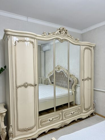 Спальный гарнитур, Б/у, Двуспальная кровать, Шкаф, Комод, Россия, МДФ, Самовывоз, цвет - Бежевый
