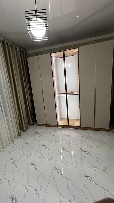 - Шкаф трехсекционный, распашные двери по краям и центральный модуль с витринными дверцами из тонированного стекла и встроенной подсветкой.