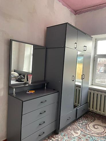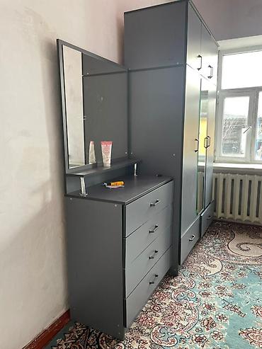 Отличный готовый комплект мебели для спальни/гостевой комнаты: всё в одном стиле, много систем хранения, лаконичный современный дизайн. Размеры на фото ориентировочные: кровать — стандарт односпальный; шкаф — высокий с антресолью; комод — 4 ящика.
