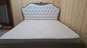 Спальный гарнитур в классическом стиле с изящной резьбой и золотым патинированием. Состав комплекта: - Кровать с высоким мягким изголовьем, каретная стяжка, фигурное изножье. Нежное бежево-молочно...