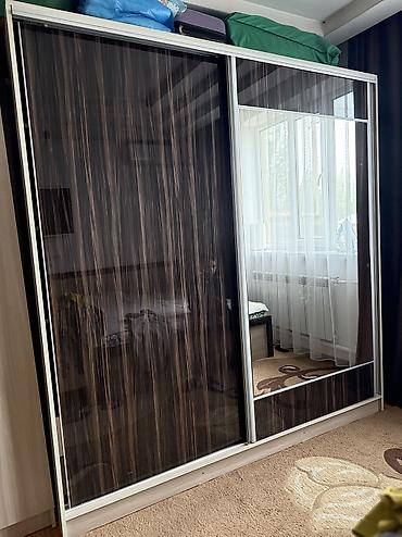 - Шкаф-купе 2 дверный с зеркальной дверью. Внутри: секция с штангой для плечиков, открытые полки для белья и вещей, два выдвижных ящика. Алюминиевые направляющие раздвижных дверей.