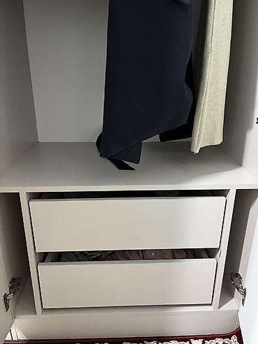 - Удобная система хранения: несколько выдвижных ящиков в столике и вместительные отделения шкафа.