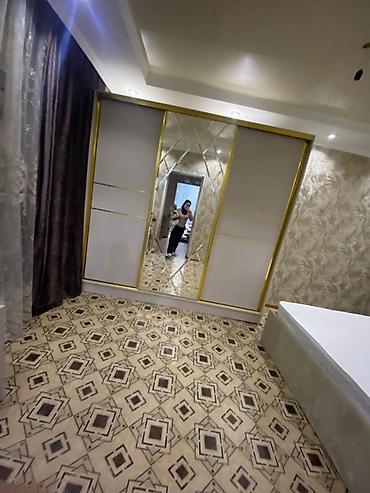 Спальный гарнитур в светло-сером/белом глянце с фрезерованными фасадами и золотистыми акцентами. Состав и особенности: - Шкаф-купе распашной модульный, 5-дверный: - центральное отделение со штан...