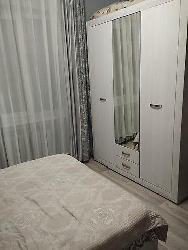 - Шкаф трехстворчатый из ЛДСП под выбеленный дуб: две боковые створки с ручками, центральная дверца с зеркалом; внизу два выдвижных ящика. Вместительный, подходит для одежды и белья.