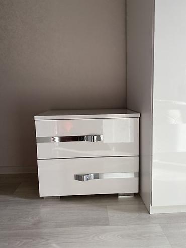 - Прикроватная тумба с двумя выдвижными ящиками и хромированными ручками.